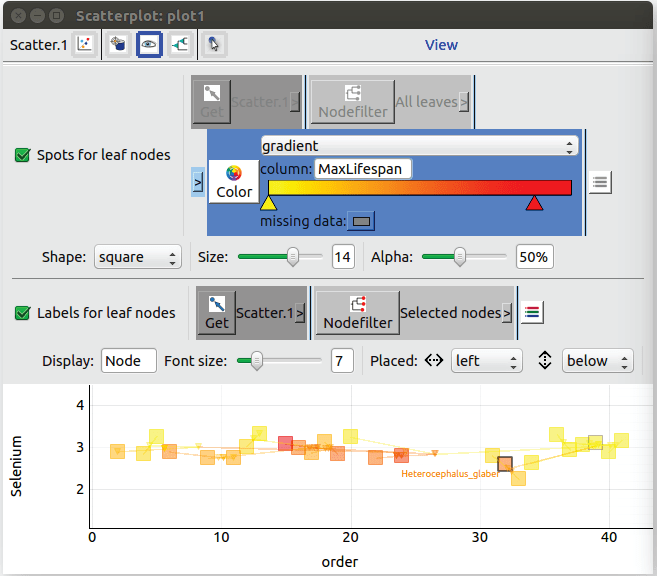 Treedex serves for both visualization and analysis of any comparative data, offering an intuitive interface to run methods from evolutionary and comparative biology (such as phylogenetic regression, phylogenetic profiling, protein coevolution and others), as well as standard statistics tools.